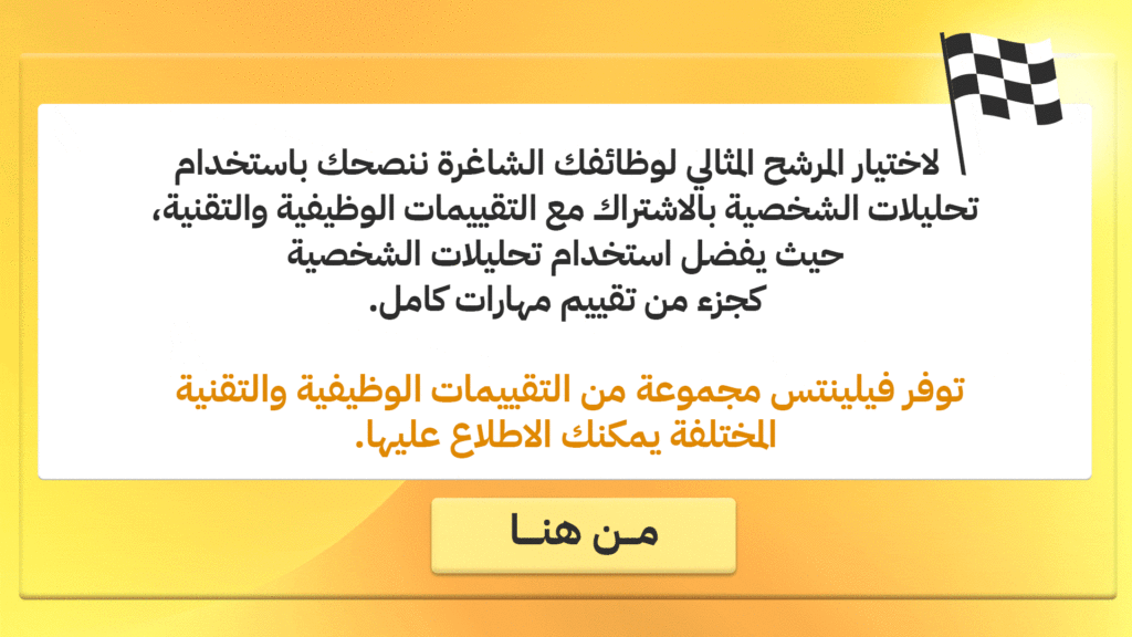 كما توفر فيلينتس تقييمات المهارات والتى يمكنك الاختيار من 4 تقييمات مختلفة، يحتوي كل تقييم على عدة اختبارات يمكنك إسنادها للمرشحين والتعرف على مهاراتهم الوظيفية والتقنية بكل سهولة.