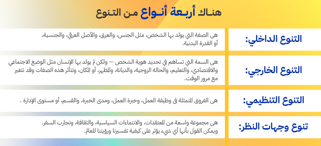 ويمكنك التعرف على أهمية التنوع في بيئات العمل من خلال النقاط التالية: