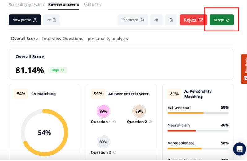نحن متحمسون لتقديم ميزة جديدة تعمل على أتمتة عملية قبول ورفض المرشحين. حيث: